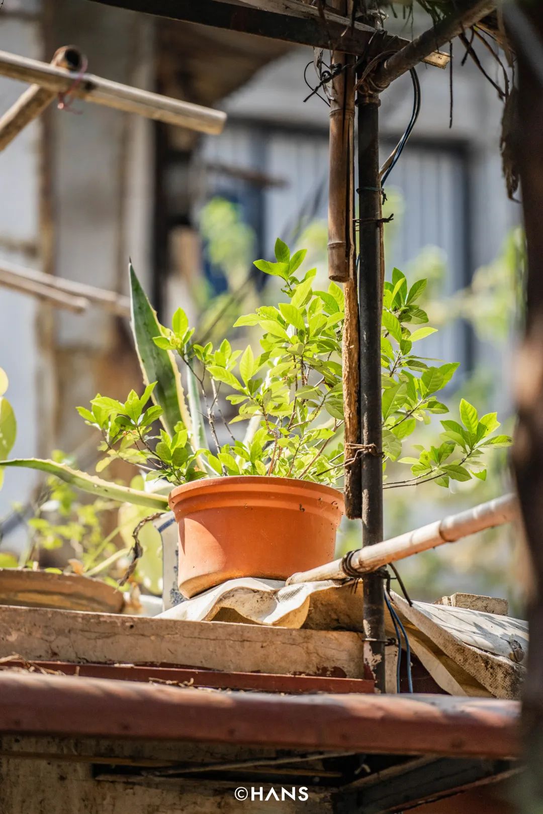 这里的天井和院子被保留,各家搬盆景过去,变成花园。花园里摆满各种款式的凳子,凳面被屁股坐出包浆。
