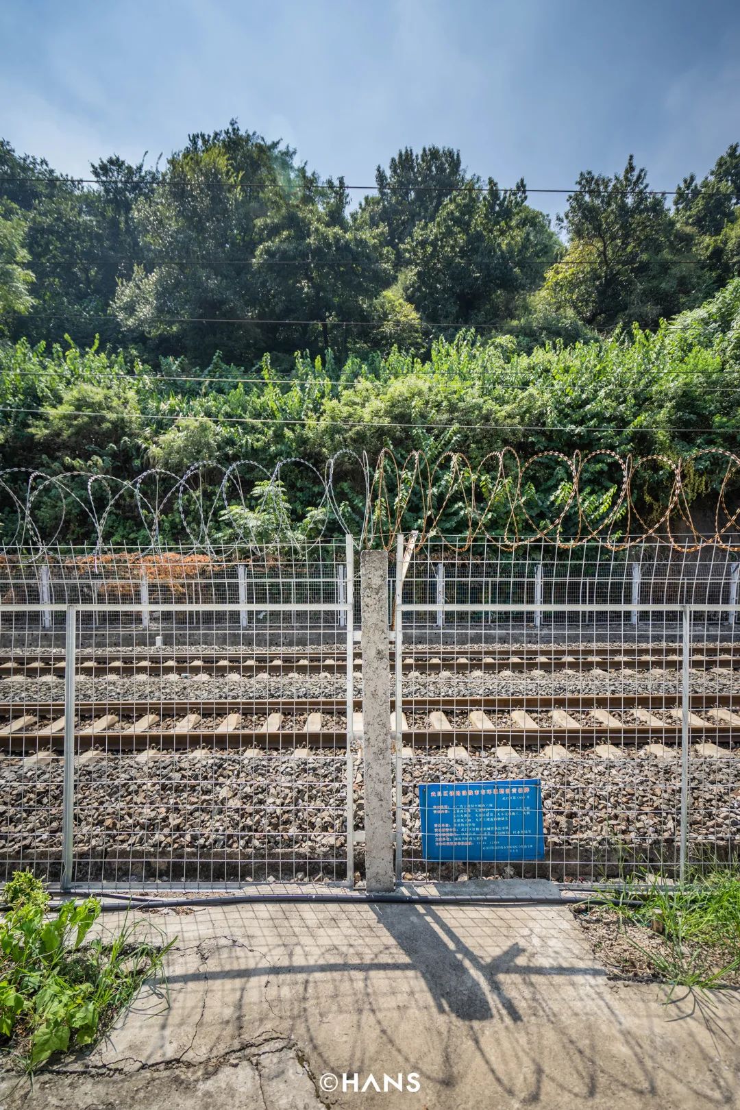 顺坡爬到顶是京广线,铁道旁的房子被刷成纯白色,配上山和蓝天、是动漫里的世界。