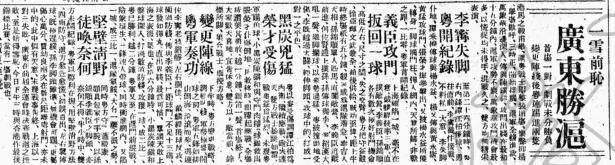 1935年10月19日《申报》刊登《一雪前耻:广东胜沪》,详细报道了上海与广东的这场足球赛
