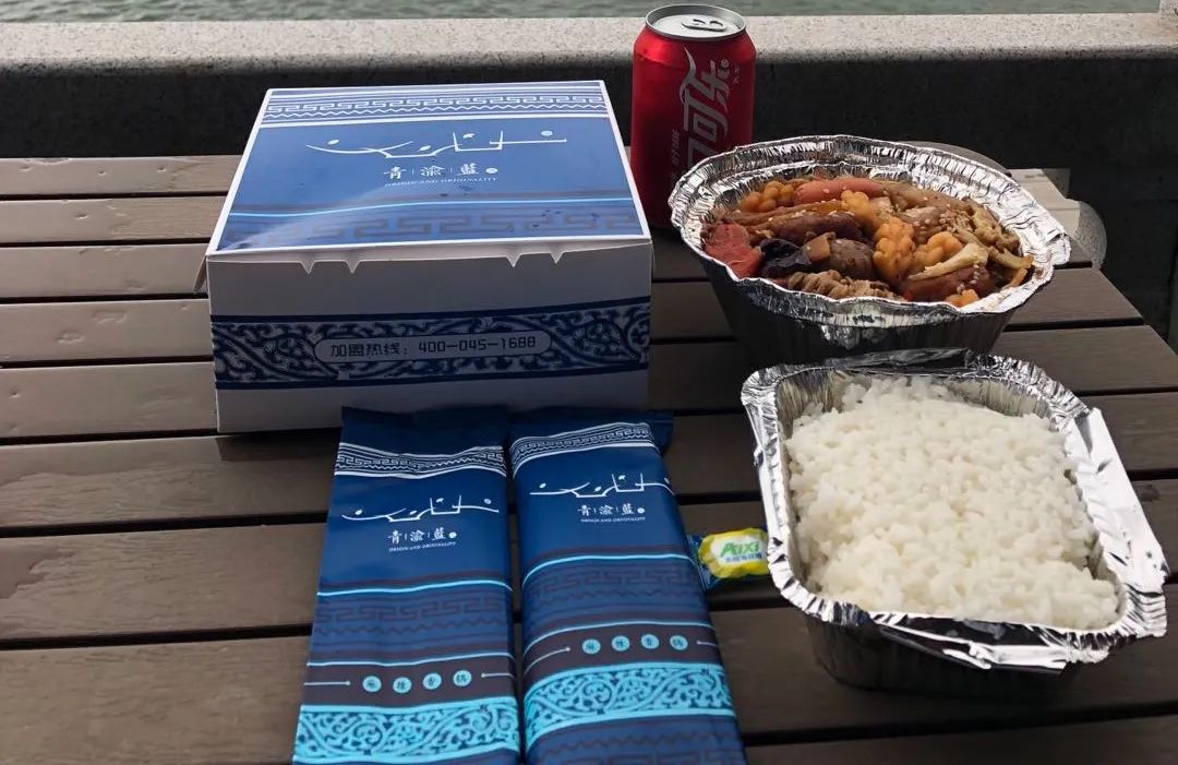 青渝蓝用的是铝箔纸包装盒,依靠材料本身的热保温原理,可以在送达的过程中持续加热。