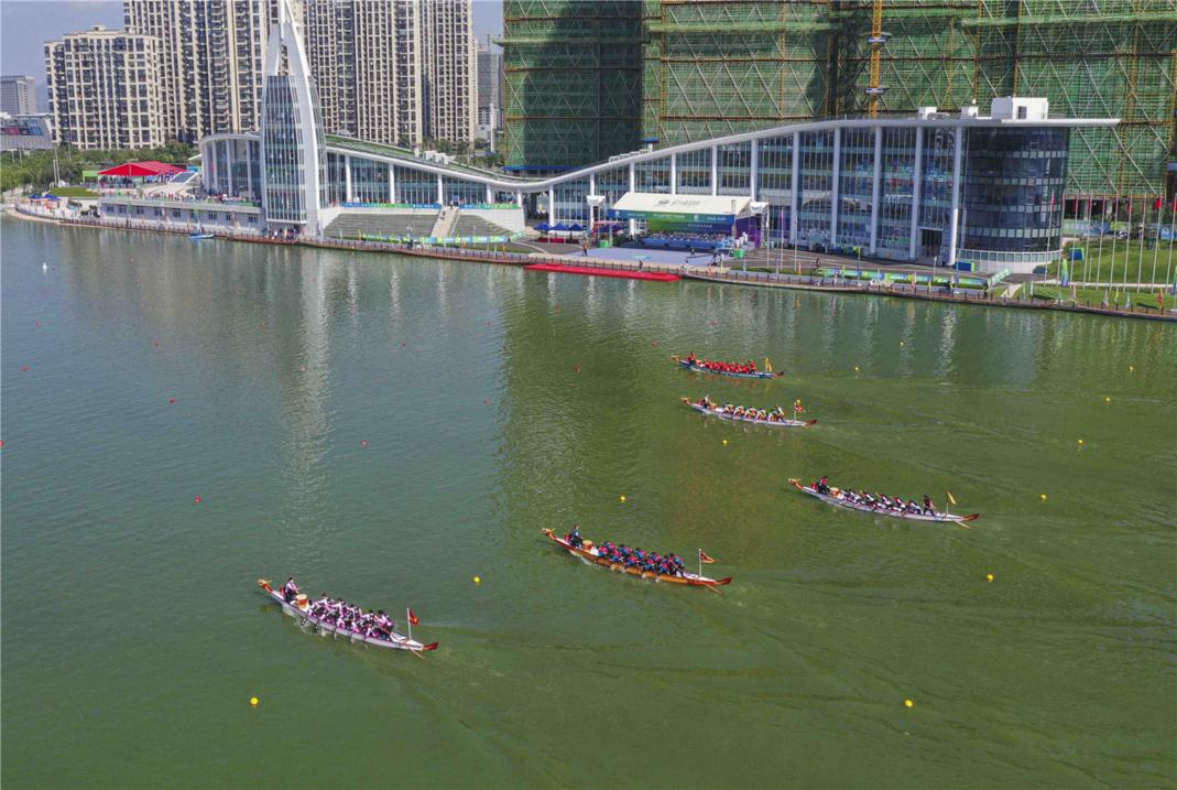 来自21个省区市和上海前卫体协的20支男子龙舟队、20支女子龙舟队在这里展开为期4天的水上角逐。温州苍南队代表浙江参赛,在首日赛事中勇夺男子500米直道赛冠军。