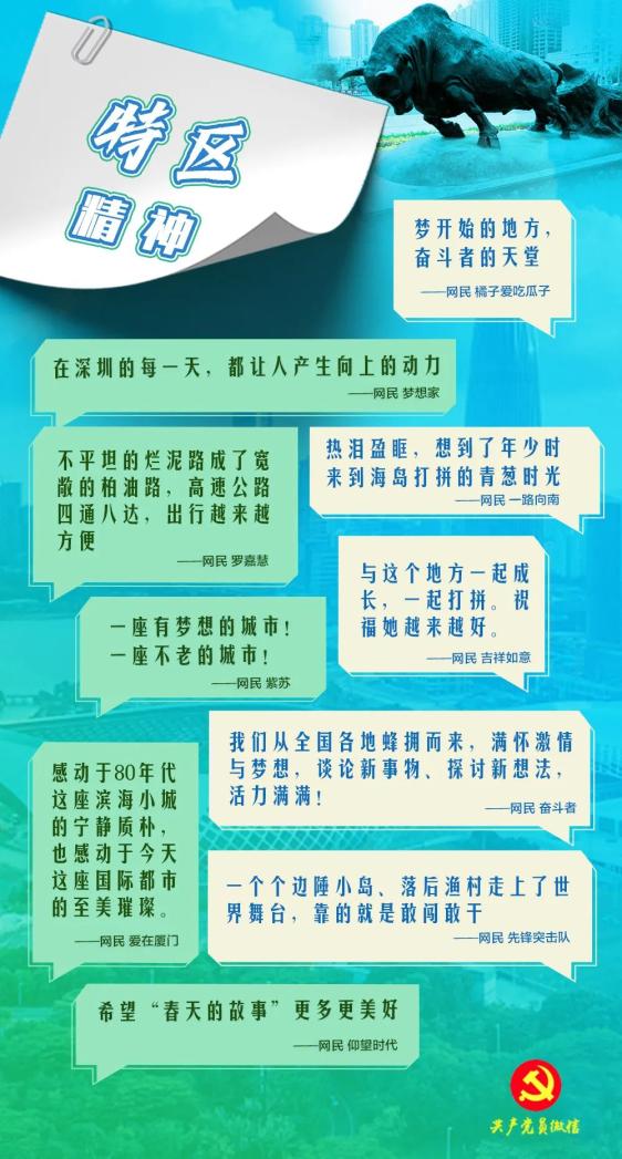 奔跑吧,“拓荒牛”!站在新的历史起点上,我们要以“功成不必在我”的精神境界和“功成必定有我”的历史担当,传承发扬特区精神,以一往无前的奋斗姿态、风雨无阻的精神状态,继续书写更多更美的“春天的故事”!