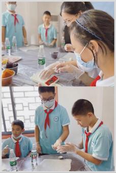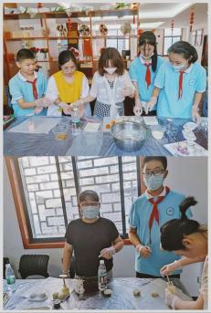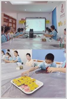 在社区工作人员的指导帮助下,师生一同制作冰皮月饼。你做皮、我做馅儿,分工合作,很快便制作出一大盘月饼。每个人都满载而归,肚子里装着香甜蛋挞,手上拿着美味冰皮月饼,带回学校分享给小伙伴们,一起感受节日的氛围。