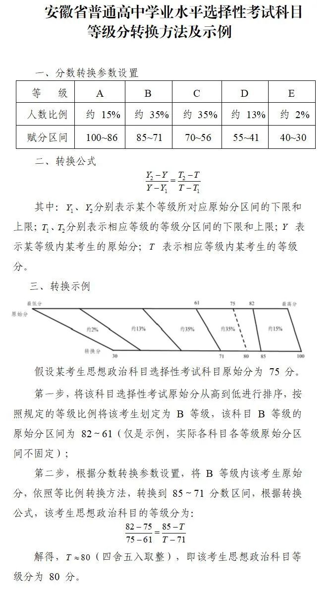 简单说来就是先根据单科考试分数在全省的排名,划分五个等级;然后再根据公式计算出等级分。比如考生小孔在高考中选择了地理,原始分考了80分,在全省所有选择地理的考生中排在前5%。那么他的成绩就位于A等,赋分区间为100~86分。根据当年全省考生原始分数的分布,假如A等级的分数区间为98-92分(这个要根据当年成绩分布为准),那么按照公式转换,小孔的等级成绩为94分,最后计入高考成绩的也是94分而非80分。