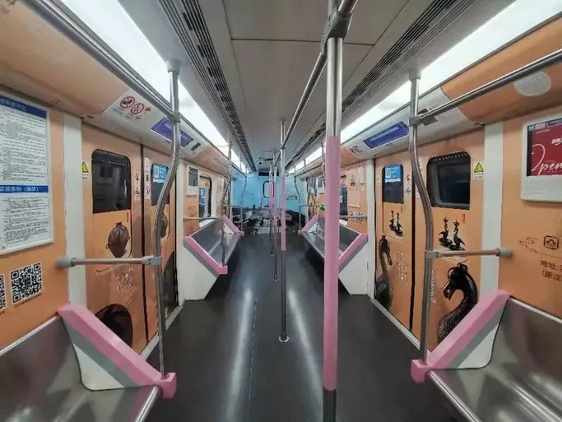 武汉博物馆与武汉地铁集团合作,9月23日开始,在地铁2号线6个车厢开通“武博历史文化专列”,分别设立为“穿越古今 趣赏萌兽”“大美吉金 王者风范”“文明瑰宝 瓷韵多彩”“天地精灵 璀璨江汉”“豪素生春 纸落云烟”“江汉遗珍 至美祥和”等6个主题。