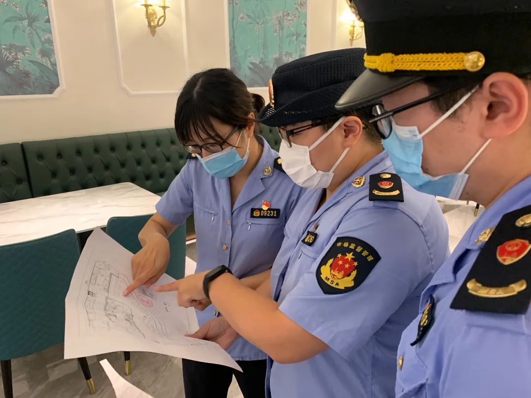 为确保餐厅符合开业标准,来自嘉兴市场监管所的两位监管人员根据手中的图纸,先后来到餐厅后厨、大堂等区域,对餐厅内相关设施配置情况做最后查验。