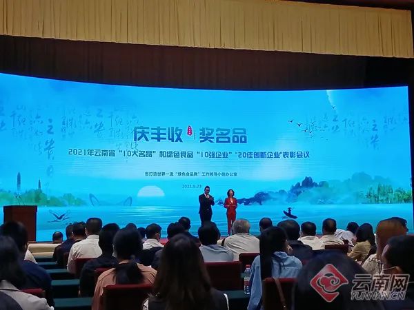 9月23日,以“庆丰收·奖名品”为主题的2021年云南省“10大名品”和绿色食品“10强企业”“20佳创新企业”表彰会议在昆明海埂会堂召开。省委、省人大常委会、省政府、省政协主要领导,省委、省政府有关领导出席表彰会并为获奖企业颁奖。省有关部门和80家获奖企业负责人参加会议。