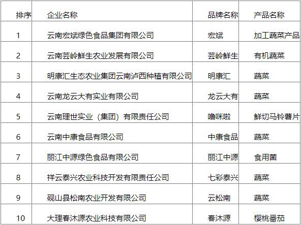 原标题:《祝贺!云南10大名品、绿色食品牌10强企业、20佳创新企业公布》