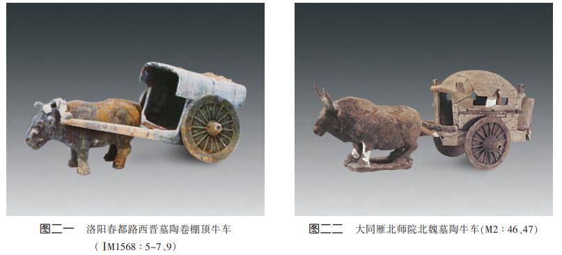 不仅如此,出于对穹庐的喜爱,该墓群出土的一部分牛车模型的车顶还一改西晋以来流行的卷棚顶(图二一),而变为穹顶(图二二),使整体车棚形成穹庐的形貌(图二三、二四),也可以说将牛车改成装了轮子的穹庐。