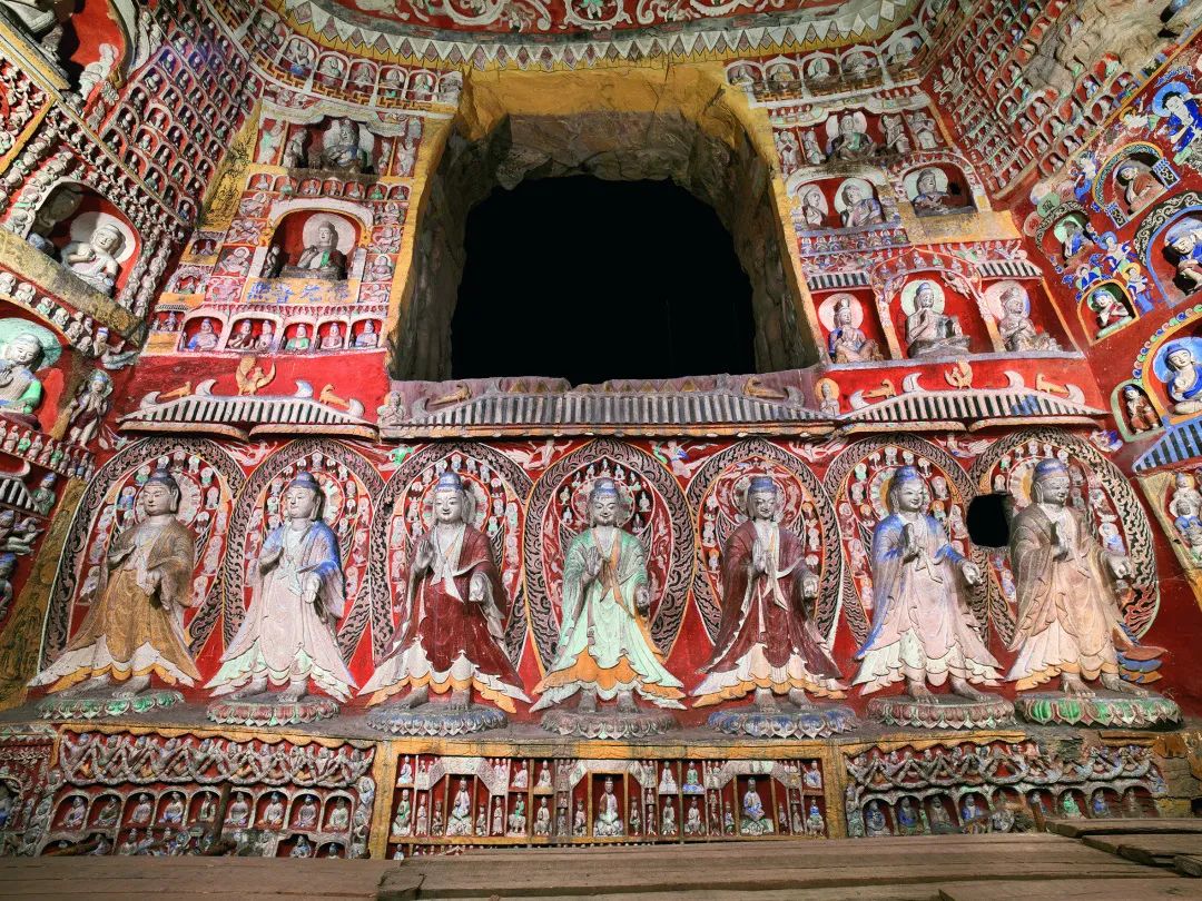 但是,直到孝昌初年因六镇起义致平城荒废为止,云冈还有小规模的开窟活动,继续凿建的都是集中于崖面西部的一些中小型的洞窟,造像面容更趋清秀,而且还有些领先于洛京的新创举,例如三壁设坛,形成三壁三龛的佛像组合,就是滥觞于云冈,以后才流行于中原石窟。