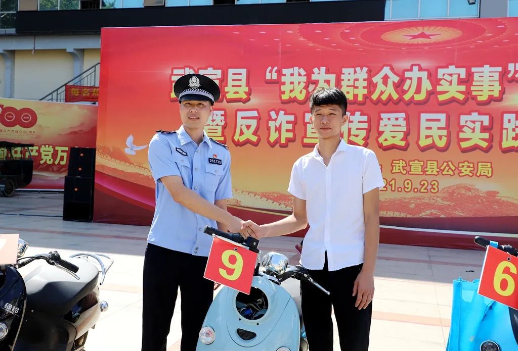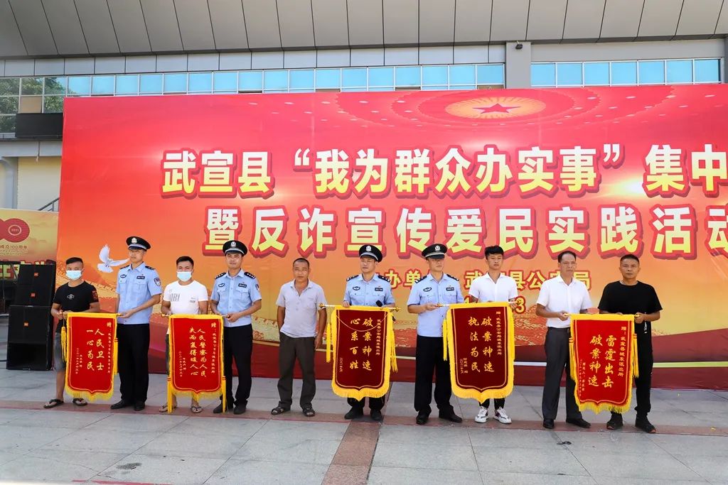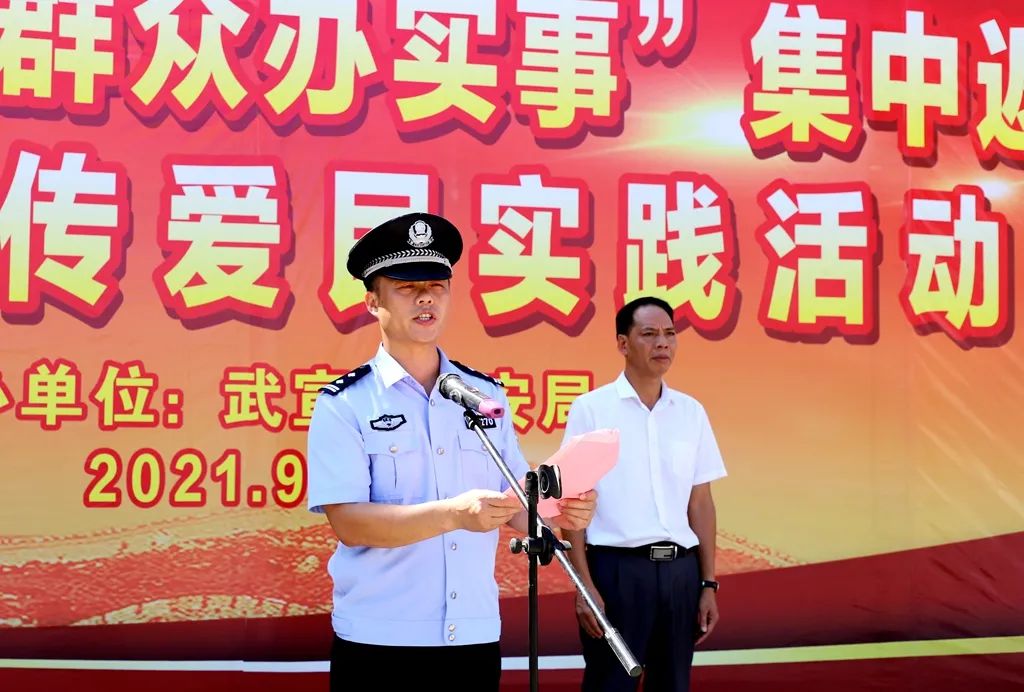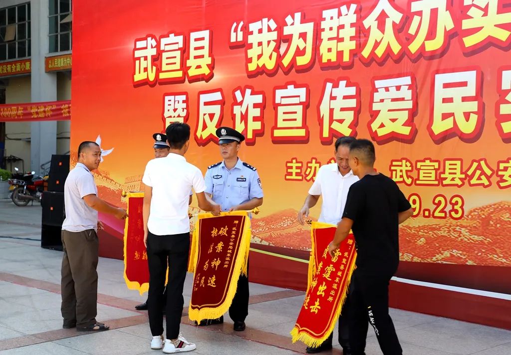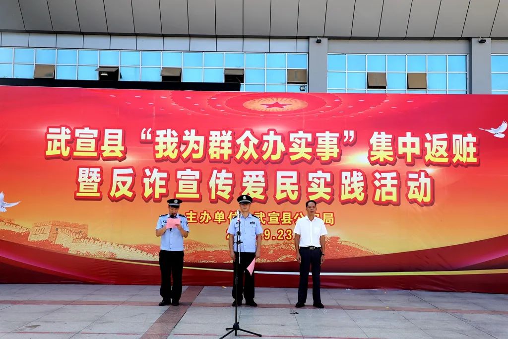 9月23日,武宣县在县马鞍山广场开展“我为群众办实事”集中返赃和反诈宣传爱民实践活动。副县长、公安局局长汤加良参加活动。