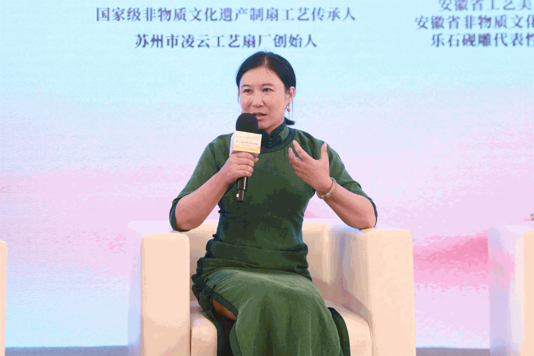现场还举行了“科技与文化融合创新发展中的女性价值”专题访谈。中国制扇工艺大师、国家级非物质文化遗产制扇工艺传承人盛春分享了传统工艺品牌打造和宣传推广的独到经验;高级工艺美术师、安徽省非物质文化遗产项目乐石砚雕传承人李英现身说法,对年轻的传承人提出了寄语和期待。中国美术学院教授、博士生导师、纺织服装研究院院长吴海燕就传统文化教育与人才培养提出见解;启迪控股副总裁、启迪之星执行总裁、清华创业园副主任韩威围绕创新创业作了个案分享。最后,西交利物浦大学西浦智库主任、博士生导师宋瑜就如何发挥女性价值等话题与现场嘉宾进行了深入的探讨。