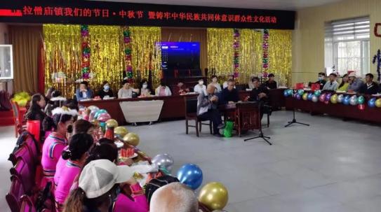 拉僧庙镇开展了“我们的节日·中秋暨铸牢中华民族共同体意识群众性文化活动”,活动现场每个人用一句带有月的歌来表达团圆的心情,通过击鼓传花、歌曲对唱、少数民族舞蹈表演、抢凳子、即兴舞蹈展示等形式,不仅让居民群众欢聚一堂感受中华传统节日的魅力,同时为居民营造了民族团结一家亲的氛围。