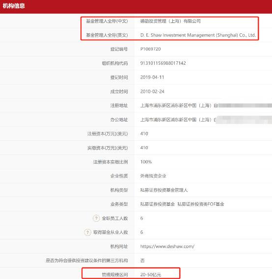 目前来看,规模比较大的是德劭投资,尽管旗下仅有德劭锐哲中国私募证券投资基金一只产品,但其管理规模区间在20-50亿元。