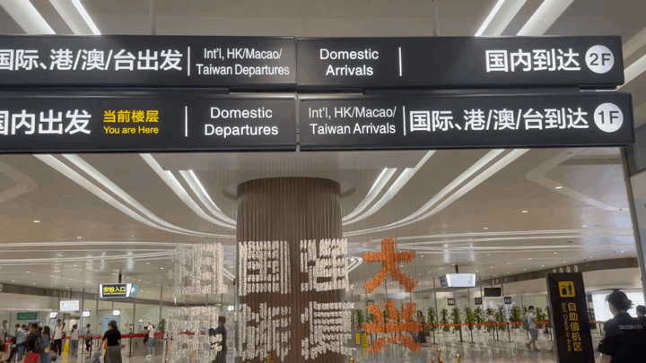 通过安检后,我们就来到了航站楼二层国内出发与到达混流区。这里有更多文化与创意巧妙融合的景观等你发现。
