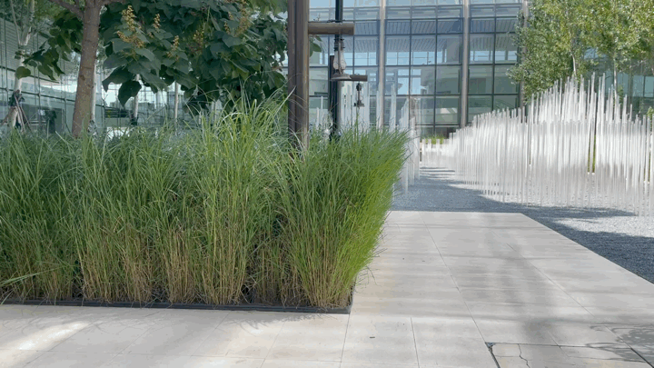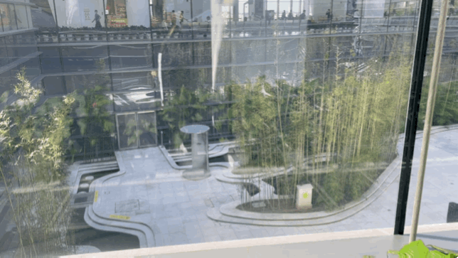 茶园位于D指廊尽端,以茶马古道丝绸之路为设计灵感打造了一派闲逸茶境。茶园中的公共艺术点位《禅境》通过不锈钢古茶树映射水面的虚实景色,营造虚实有无的禅意。置身于内,让你在休憩品茗中,领略茶道朴素的清雅美学精神。