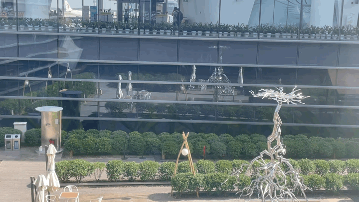 走到D63登机口与D64登机口之间,《滴水倒影》映入眼帘。景观以“水滴”为灵感,如水一般似有动感,身临于此,深有亲近自然之意。