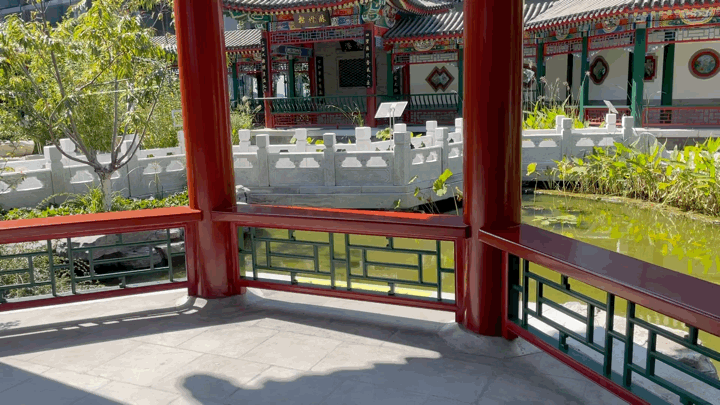 在《爱》的温暖下继续向前,我们就来到了E指廊园林——中国园。园内层次丰富,彩绘,碑匾楹联,假山等造景元素众多。在园中小径缓步欣赏,不仅可以让你感受到古典园林和传统文化的诗情画意,更能在传统元素与现代艺术的交叠中,获得独特的审美体验。