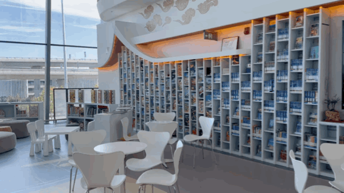 来到A指廊A01登机口附近,你就能看到首都图书馆大兴机场分馆。分馆选用橙色为主色调,为你营造了一个阳光、活力的舒适空间。来选取一本喜欢的书临窗而坐,为你的旅途增添更多的悠然惬意。