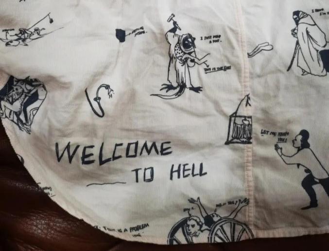 “Welcome to hell(欢迎来到地狱)”!这是江南布衣”旗下的“jnby by JNBY”童装上印的文字,此外,衣服上还有很多撒旦、骷髅头及疑似车裂和万剑穿心酷刑等炼狱般的诡异图案。