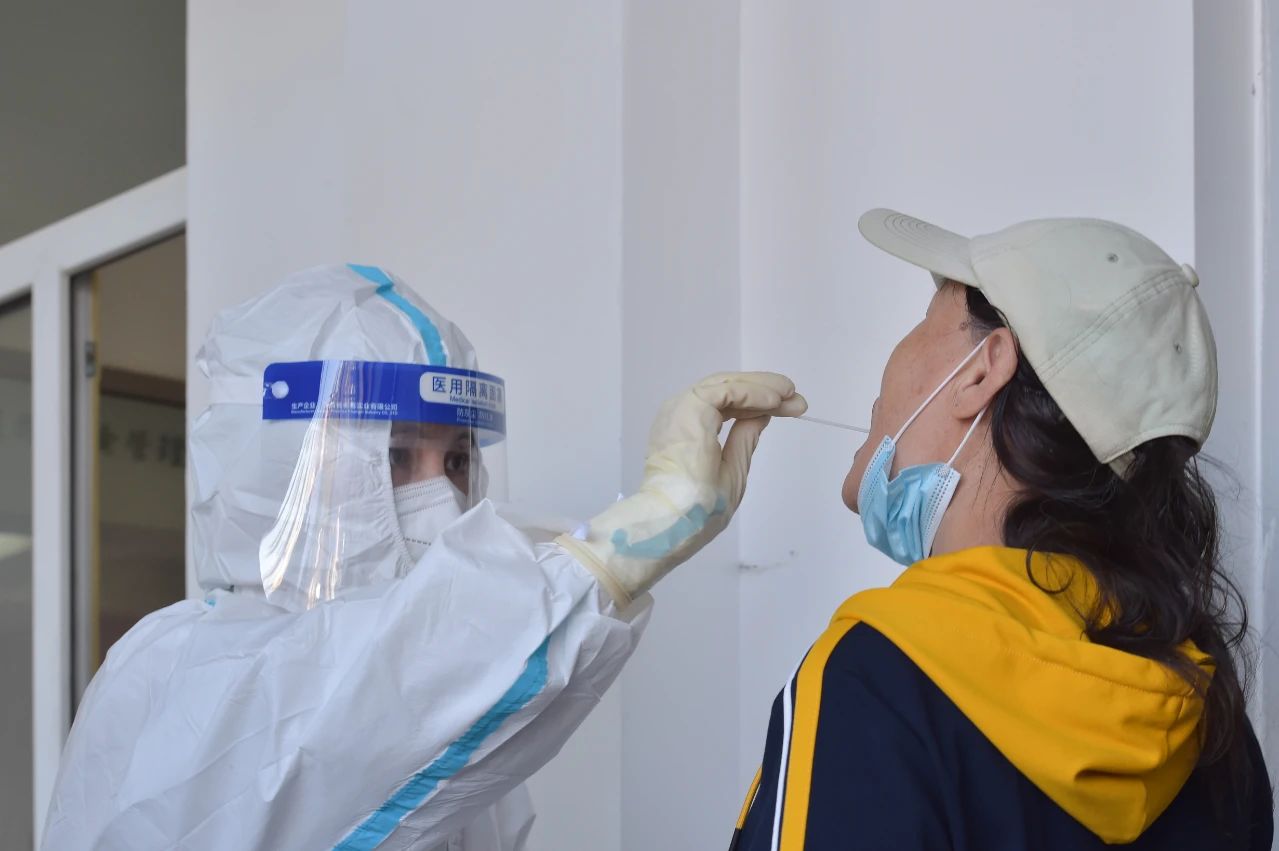 △9月23日,在哈尔滨市巴彦县兴隆镇一处核酸检测点,医务人员为居民进行核酸检测取样。新华社记者 谢剑飞 摄