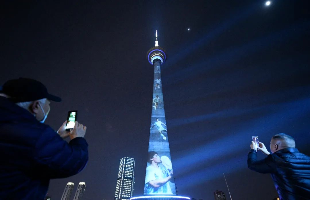 天塔纪念马拉多纳灯光秀