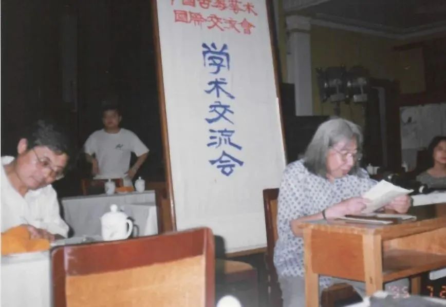 高先生在成都全国古琴学术交流会上发言,主持人为左一已故琴家成公亮先生
