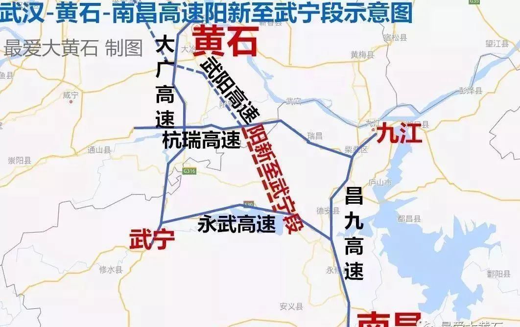 武阳高速公路是湖北省“十三五”规划的重点公路项目,也是连接武汉、南昌、黄石城市群的重要交通枢纽。武阳高速黄石段全长91.308公里,宽26米,双向四车道,设计时速100公里/小时,建成后,将直接缩短武汉至南昌的时空距离,全面打通三大中心城市之间的3小时高速交通圈。