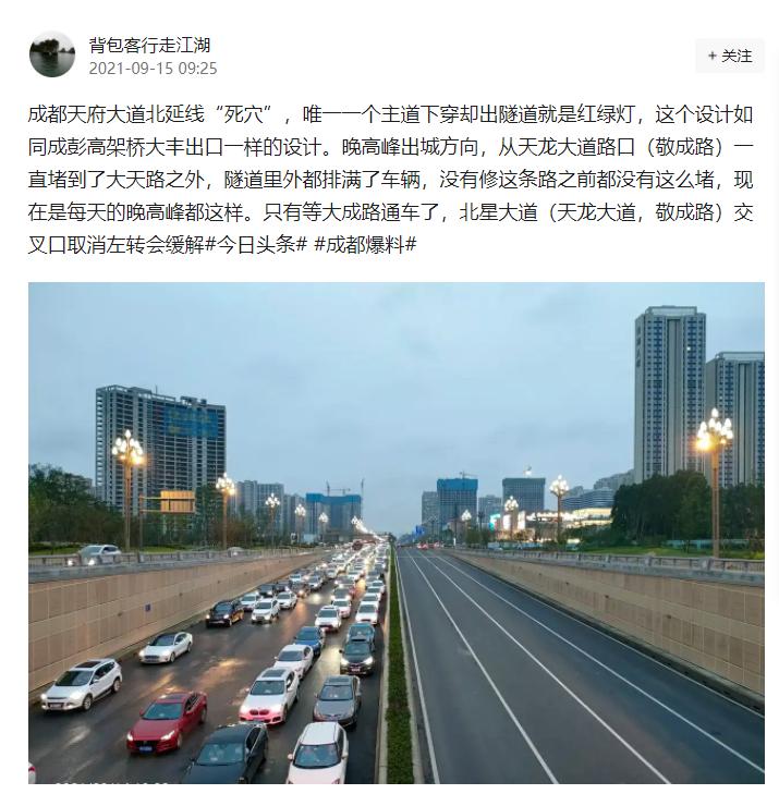 例如,有市民反映天府大道北延线隧道拥堵。政事君梳理发现,之前也有网友在社交平台反映过这一问题。