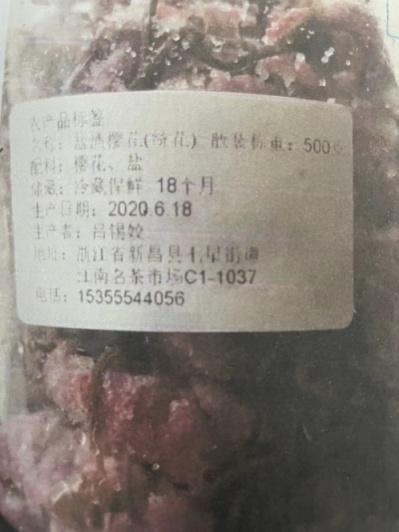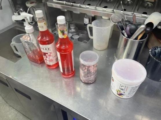 2021年3月12日,奉贤区市场监管局执法人员在对辖区某蛋糕店开展监督检查时,发现其经营场所墙面贴有名为“邂逅樱花”的饮品宣传版面,所标识制作方法如下:“冷饮:雪克杯中加入樱花汁40ml,果糖15ml,加冰雪克,出品杯中加入樱花,草莓爆爆珠一勺,加入苏打水。”随后,执法人员在操作间的冰箱冷藏柜内查见一罐开封的“盐渍樱花”。