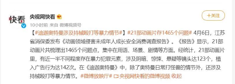 受到许多人喜爱的奥特曼突然下架,而下架的平台都没有出正式的官方通告,让不少奥特曼迷觉得难以理解,“迪迦到底做错了什么?”。随后央视的一个报道引发了大家的关注: