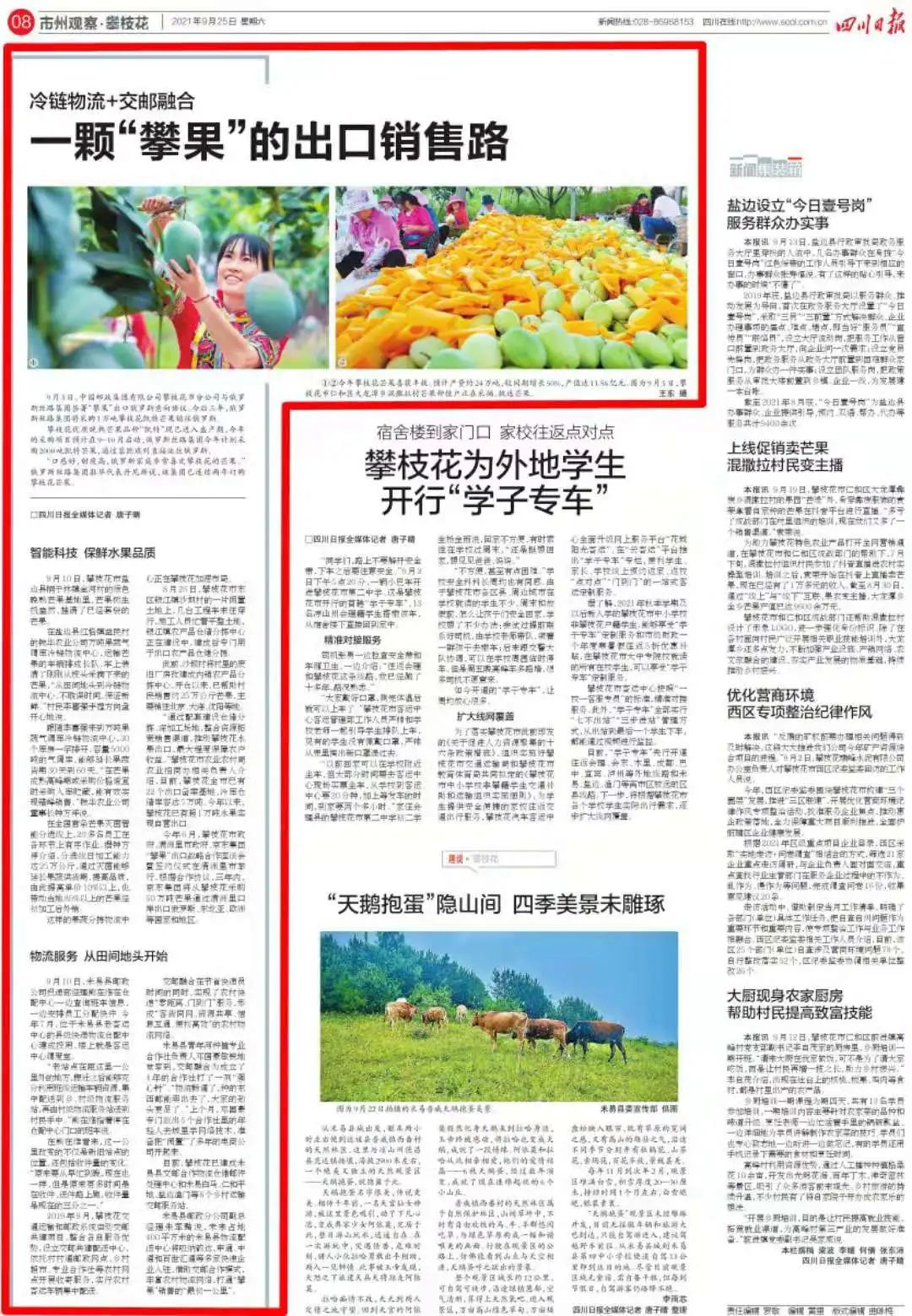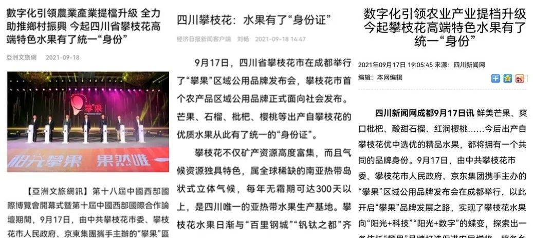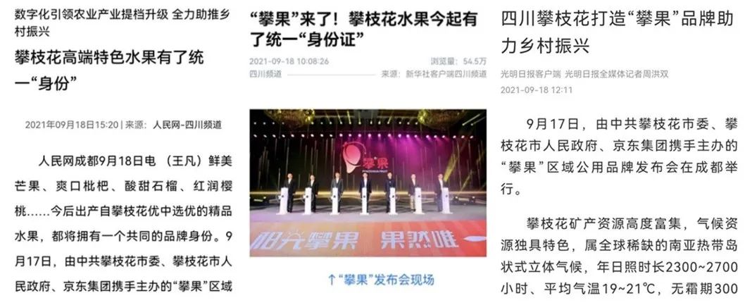 从中央级媒体到地方级媒体,从传统媒体到新媒体,宣传报道规格高。发布会举办后,各大媒体频频发力,及时通过报纸、电视、门户网站、APP、公众号、微博、短视频平台等渠道,多角度、多形式报道,从独特资源孕育独特风味、“攀果”品牌支撑体系、数字化产业发展平台等方面入手,解读攀枝花水果如何向“阳光+科技”“阳光+数字”蝶变,探索出一条依托“攀果”品牌打造促进农民增收、服务乡村振兴的新路。