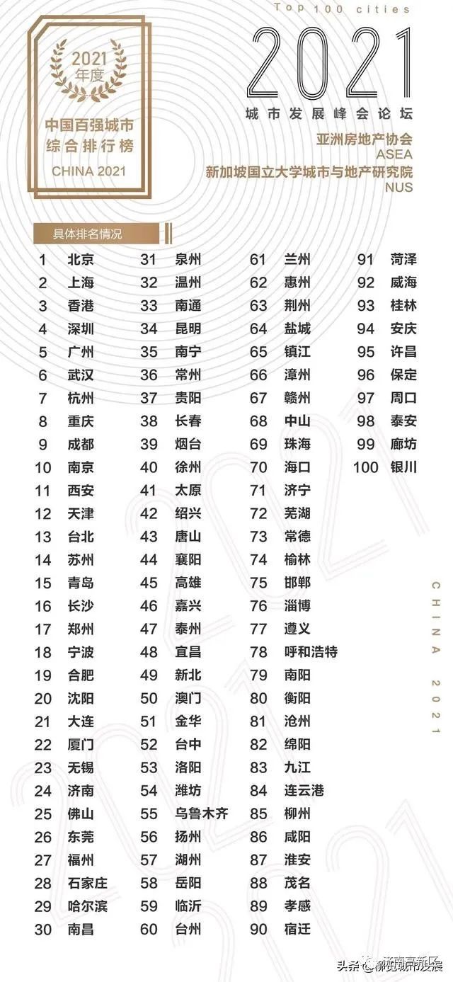 下面,我们再来看看我们国内机构评选的内地城市100强榜单,排名的依据同样是考量一个城市的综合实力,济南位列第21位。