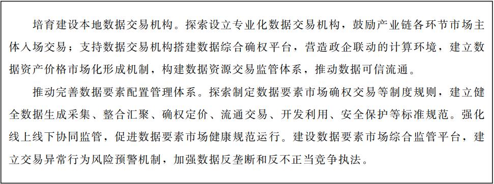 着力构建数据要素市场化体系,研究制定数据交易市场管理制度,推动数据确权交易流通,充分释放数据作为关键生产要素的重要价值,推进大数据市场化应用。