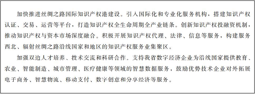 ——开放合作。立足“一带一路”建设区位优势,强化与沿线国家的开放合作,加快“数字丝绸之路”建设,提高我省数字经济创新力、引领力和辐射力。