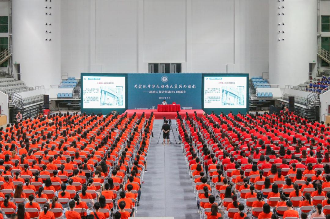 9月26日晚七点,校党委书记赵凌云以“为实现中华民族伟大复兴而读书”为主题,在佑铭体育馆为2021级全体新生讲授开学第一课,近2000名本科及硕士新生现场聆听报告,其他新生由各培养单位组织观看网络直播。