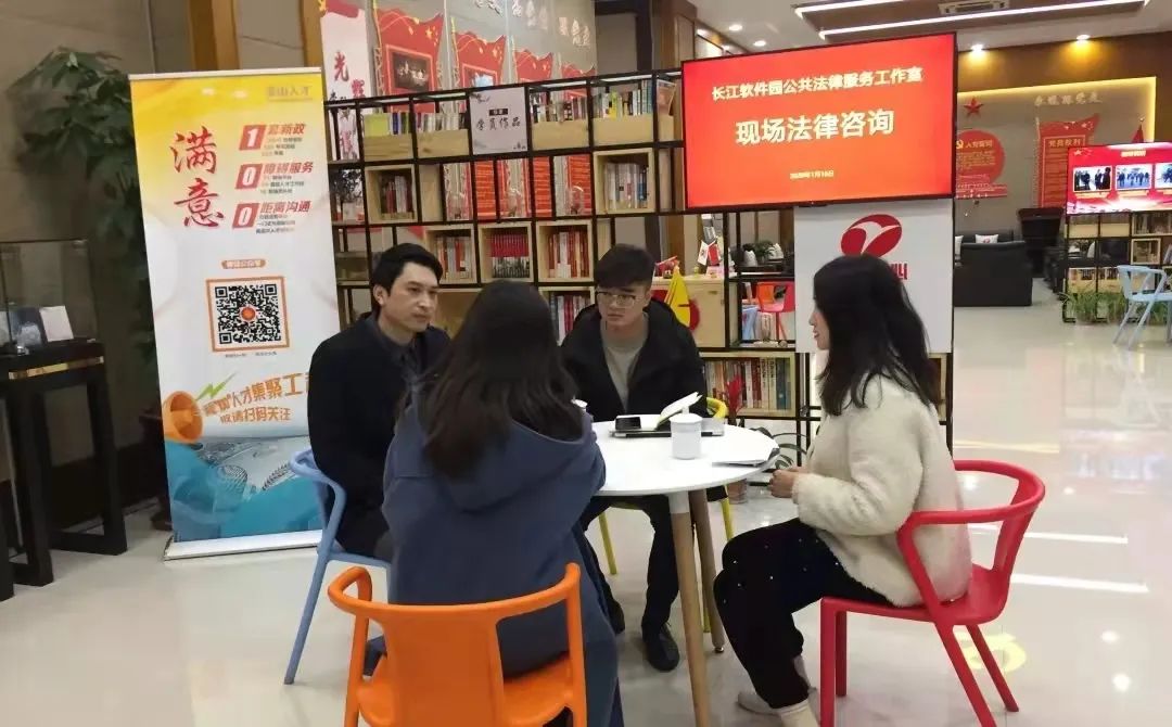 长江软件园位于宝山区高境镇。2019年12月,宝山区司法局在园区内设立公共法律服务工作室,提供法律咨询、纠纷调解、企业知识产权管理、企业风险评测等服务项目,为高境科创小镇建设注入法治活力。