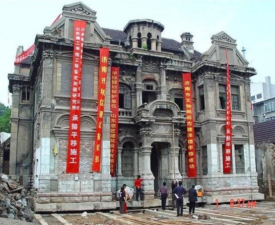 2009年,济南经八纬一路民国老别墅的平移“搬家”,曾一度轰动全城,创造了济南平移距离最长的纪录,历时13小时。
