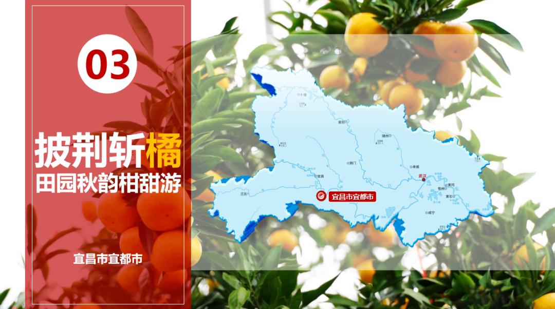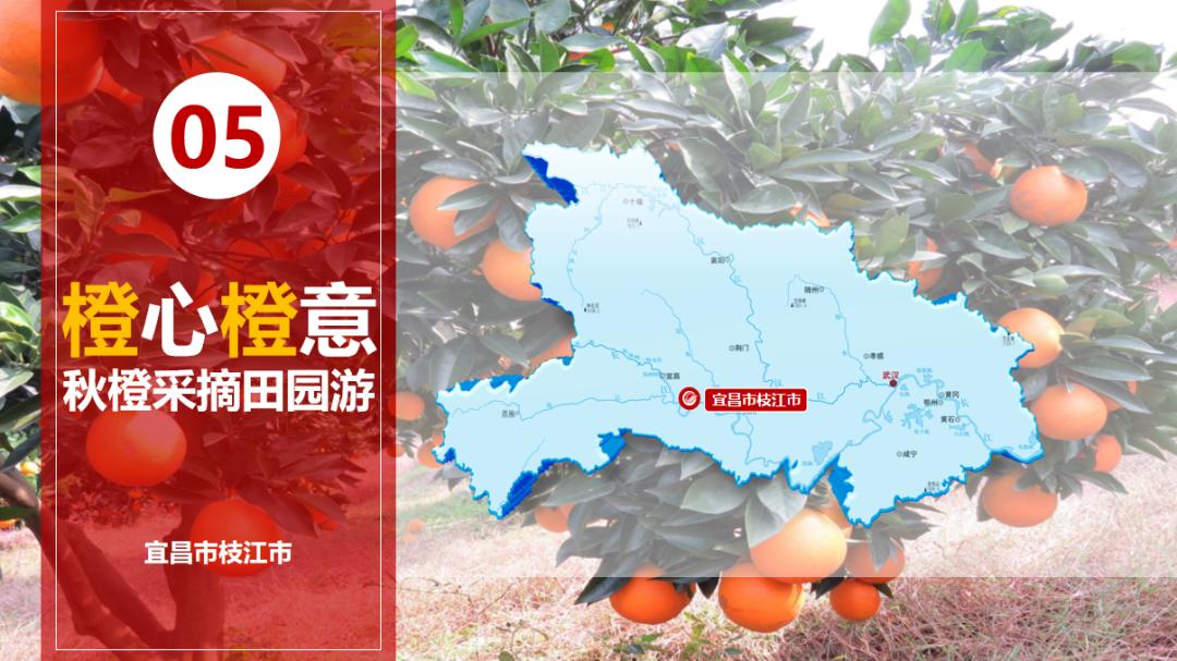 9月25号,由湖北省文化和旅游厅、宜昌市人民政府联合举办的第二届荆楚乡村文化旅游节在枝江市开幕。节会上发布了“橙风破浪”“橙心橙意”等10条湖北省柑橘采摘线路,宜昌5条柑橘采摘线路上榜。