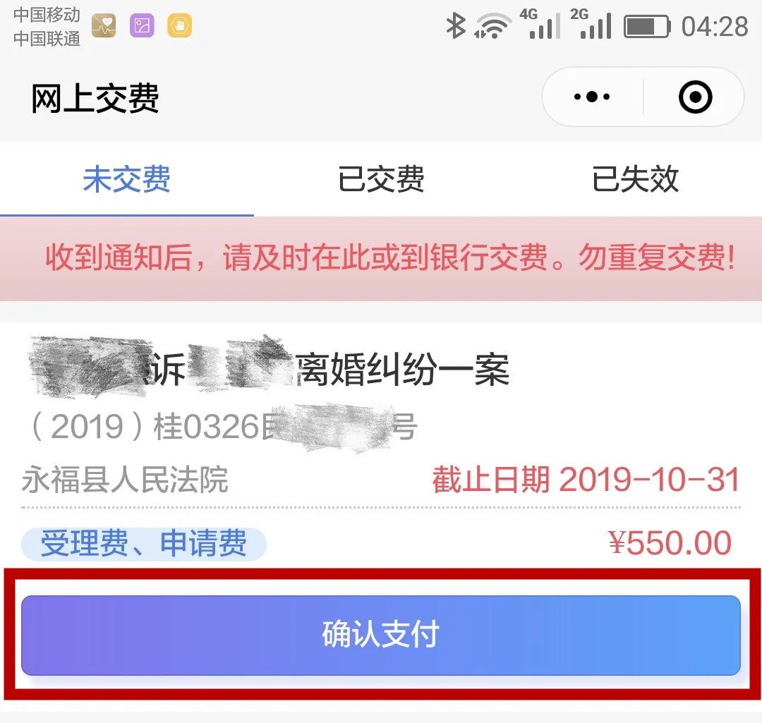 温 馨 提 示通过“广西移动微法院”立案后,在法院通过立案审查予以立案后,您会收到缴纳诉讼费短信,您按提示操作缴纳诉讼费就能完成整个立案过程。如有疑问可以拨打0773-8510448咨询。
