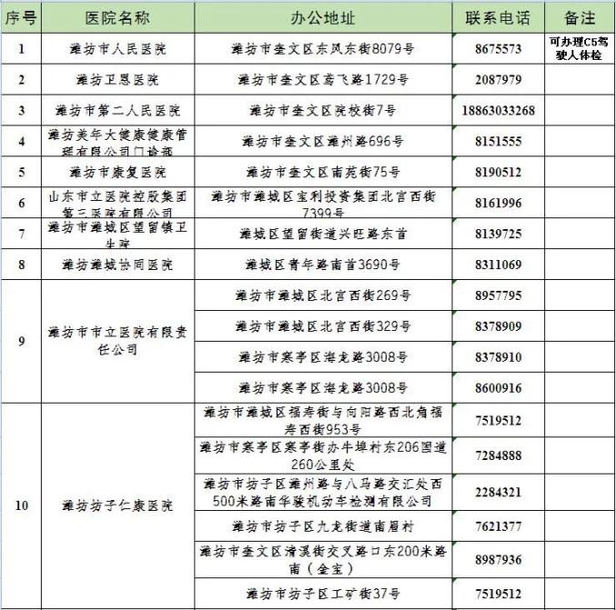驶证到期该换啦,该去潍坊哪个医院体检呀?