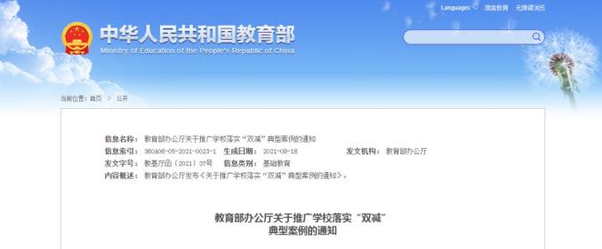 原标题:《教育部公布“双减”十大案例,青岛一案例入选!》
