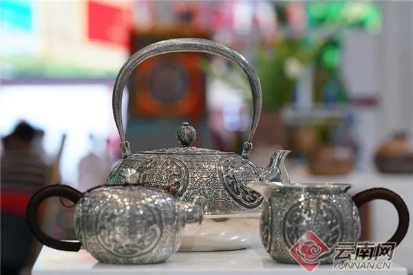 国家级非遗传承人母炳林“银饰锻制技艺”传承的一系列银壶系列、银饰系列、银工艺品系列,历经十万次的锤击,讲述着每个银器独有的故事。展台负责人说,开幕当天,一把价值4000多元的银壶就当场售出。另有一精美银制茶壶被同一顾客一次性购买了6把。