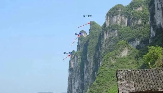 位于西陵峡明月峡口南岸的“三把刀”