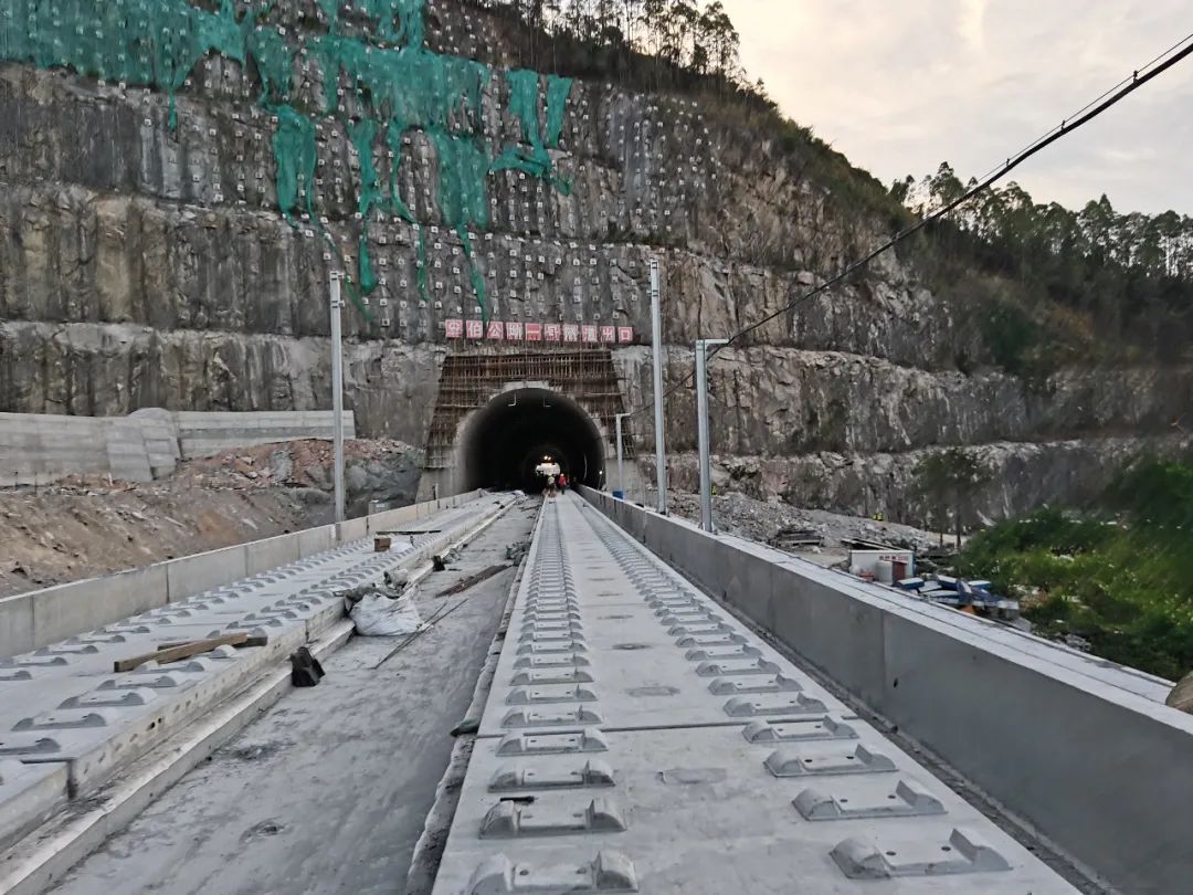 赣深高铁广东段穿越了近万米长的松岗山隧道、广东“最美森林”之一国家森林公园的银瓶山自然保护区,沿线地形地貌、地质条件复杂,全线桥隧比达到86.87%。