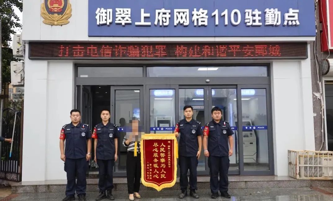 9月26日,一位群众将一面锦旗送到鄄城县公安局御翠上府110驻勤点民警手中,感谢民警帮自己寻回丢失物品,挽回了经济损失。