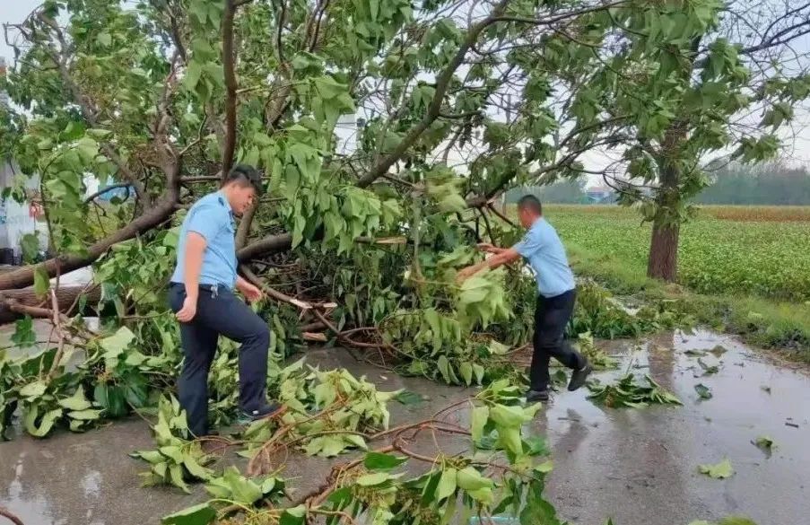 9月25日早6时许,成武县公安局大田集派出所接辖区群众求助:在成田路高庄路段有一颗大树倒在路上影响车辆通行,请求民警帮助。