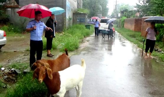 随后,民警不顾外面正下着大雨,立即对肖大伯家周围开展痕迹搜索。经过1个多小时的不懈努力,民警终于在肖大伯家西边一处无人的院落内,找到了丢失的两只羊。