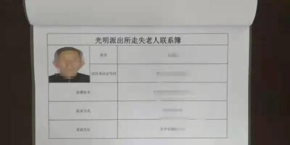派出所接到求助报警电话后,因老人年事已高,面部特征也不明显,无法成功进行人脸比对,且走失的老人往往说不清住址,导致民警处理起来也很困难。 为了快速帮助走失老人回家,光明派出所为这些走失老人建立了“爱心联系簿”。民警在工作中收集以往接处警中遇到的这类老人们的基本信息,建立走失老人台账。内容包括走失老人照片、姓名、家庭住址、家属姓名、联系方式等基本信息。如果再次遇到老人走失报警,民警就可以根据“爱心联系簿”上登记的信息快速查找,帮助走失老人及时回家。