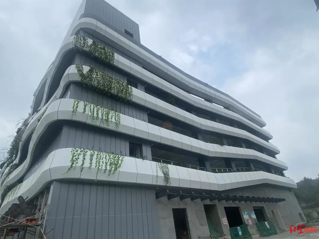 记者在现场看到,这是一栋十分有设计感的白色小楼。整栋楼引入绿色生态系统进行立体绿化,每一层都是流线造型,利用上下的错层出挑,形成了错落有致的绿化空间,风一吹,宛若波浪。